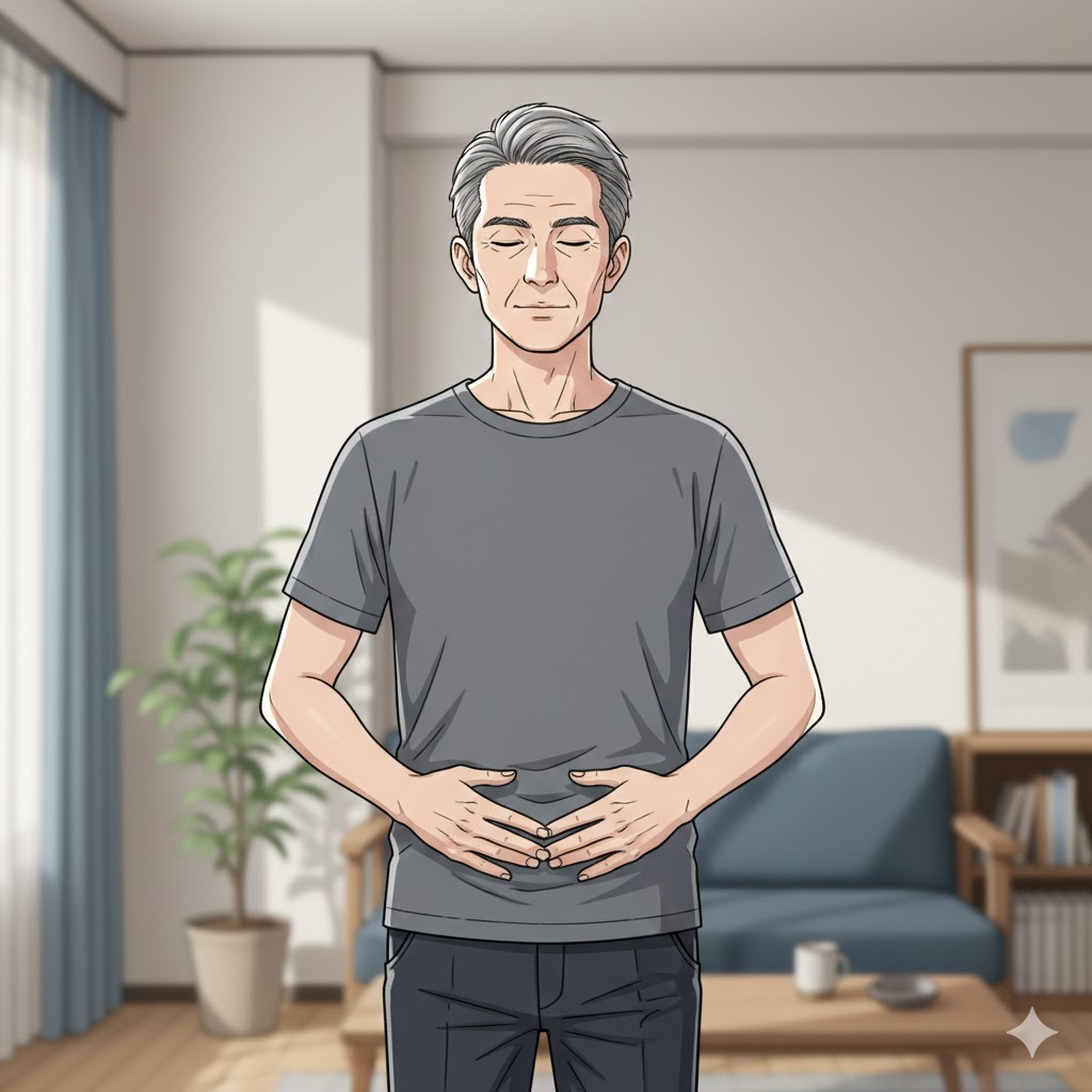 ③ 呼吸をお腹まで入れる