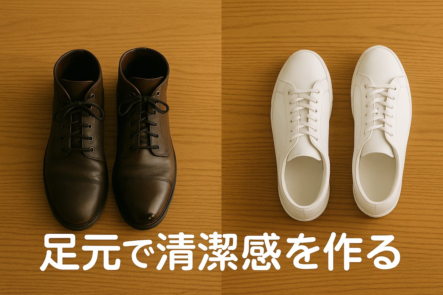 服が同じでも、靴の艶と白さだけで“清潔感の物差し”は振り切れる。