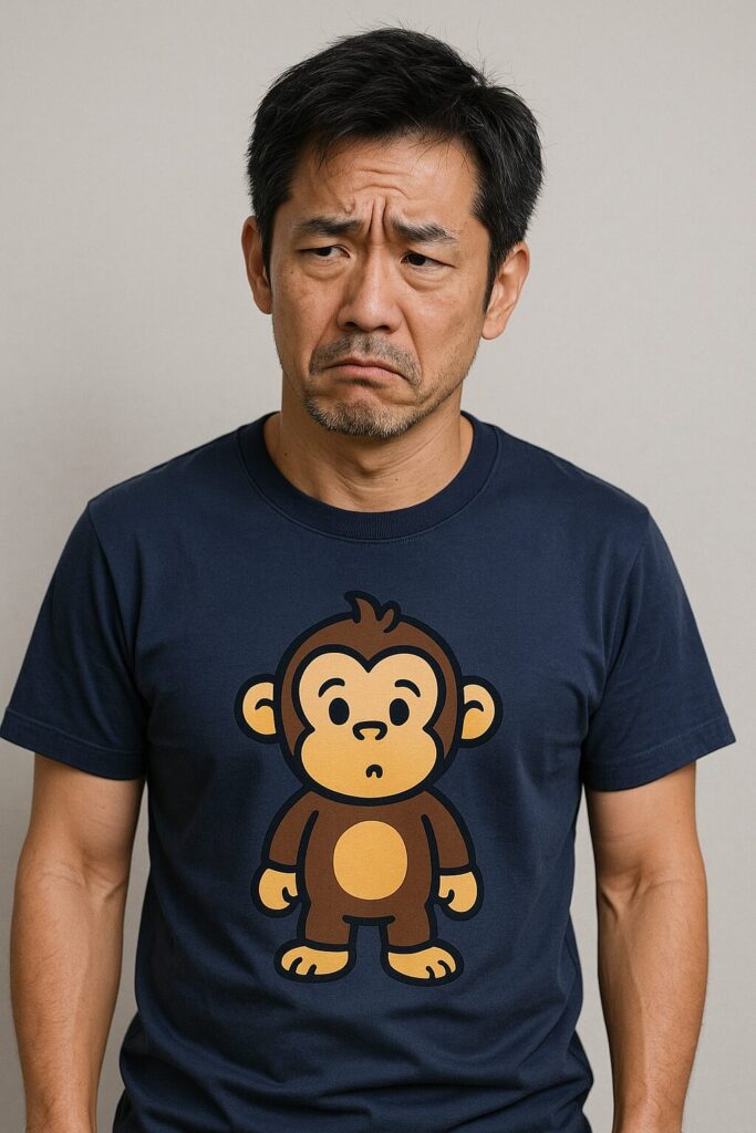 → 「見せびらかし感」が強く、いやらしい印象に。 - キャラクタープリントT