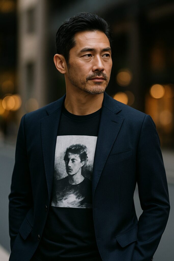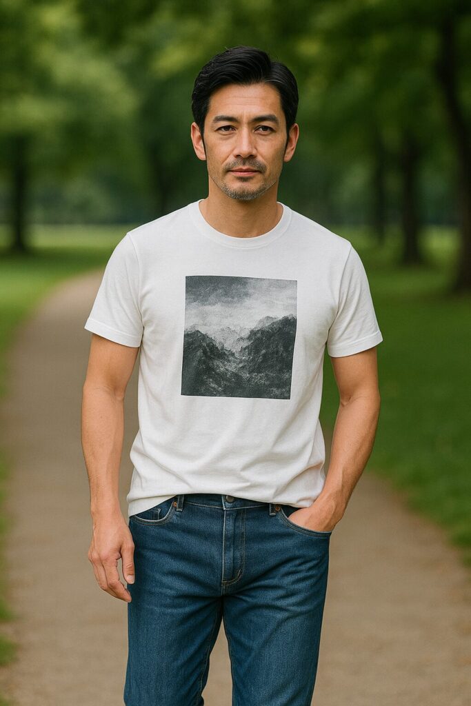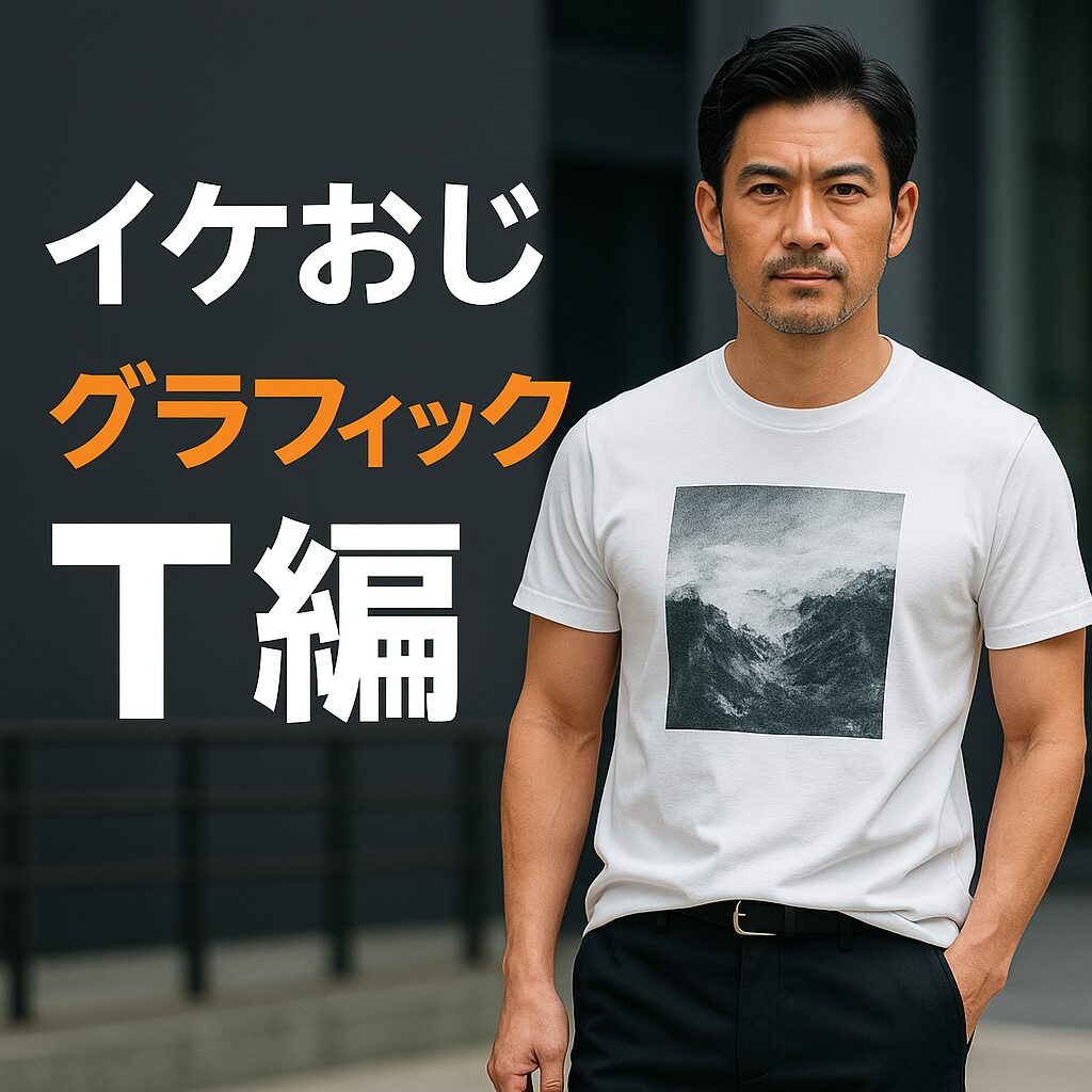 イケおじがグラフィックTを着こなせば、遊び心と余裕を同時に表現できます。