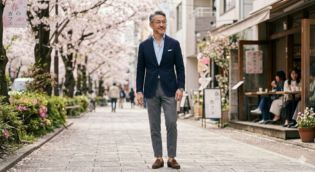 厚手のコートで誤魔化せた冬と違い、春はシルエットと清潔感がそのまま印象になる。だからこそ「なんとなく」で服を選ぶと、一気に“おじさん感”が出てしまいます。