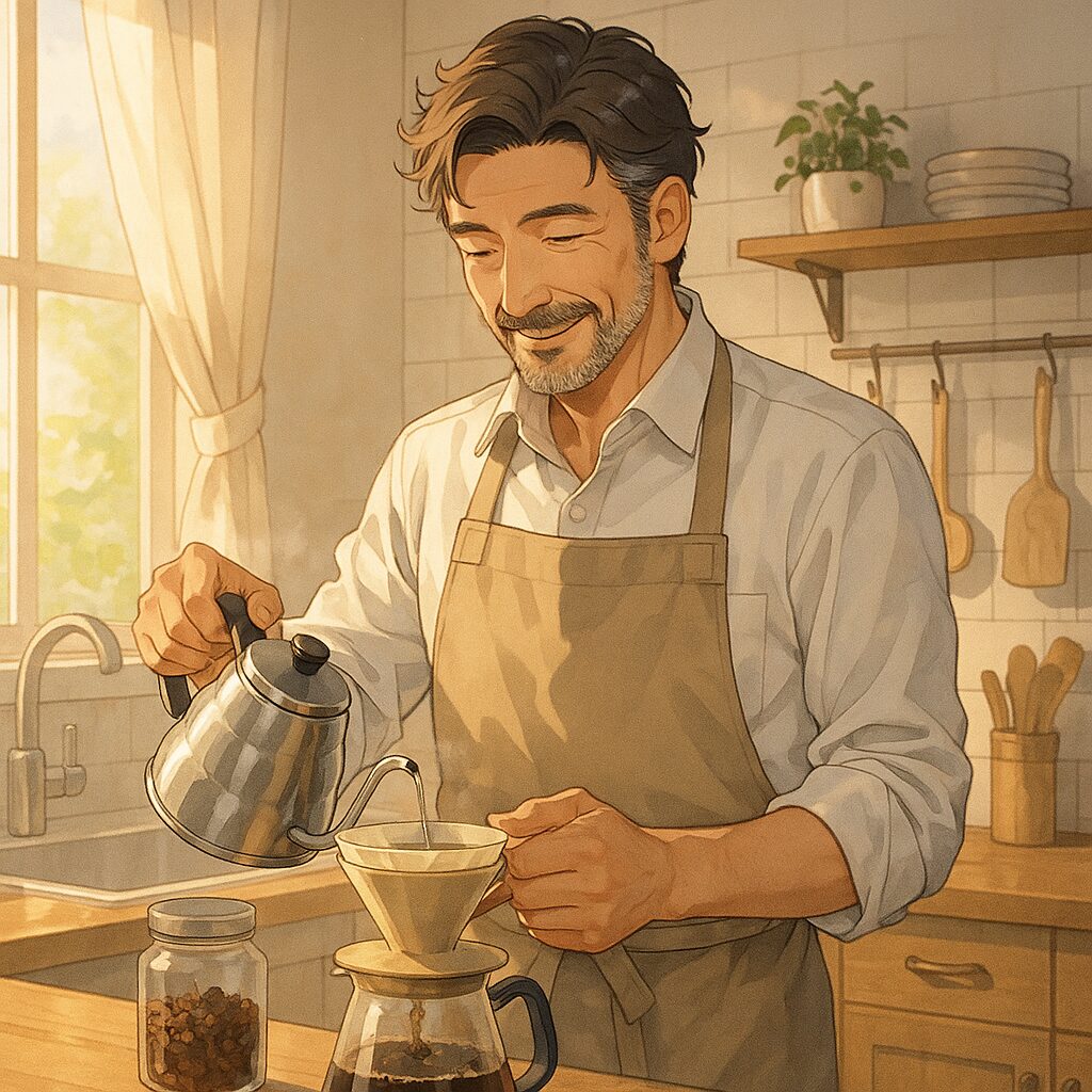 休日の朝、コーヒーを淹れたり、子どもに朝ごはんを作ったりする姿は、