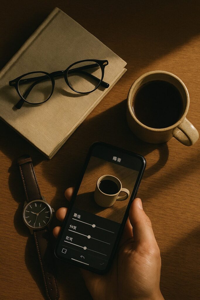 ①夕方の光を拾う ②画面から要素を引く ③粒状で“記憶色”に寄せる。スマホ1台で十分。