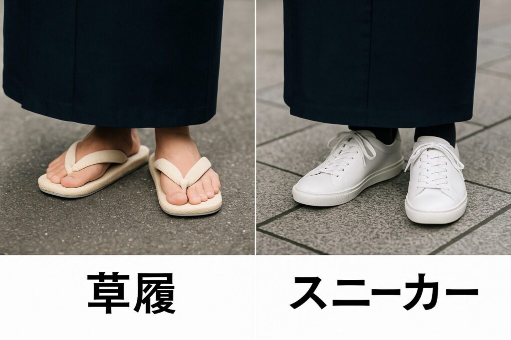 - 帯:羅・麻の角帯で軽く。素足×下駄 or 白スニーカー