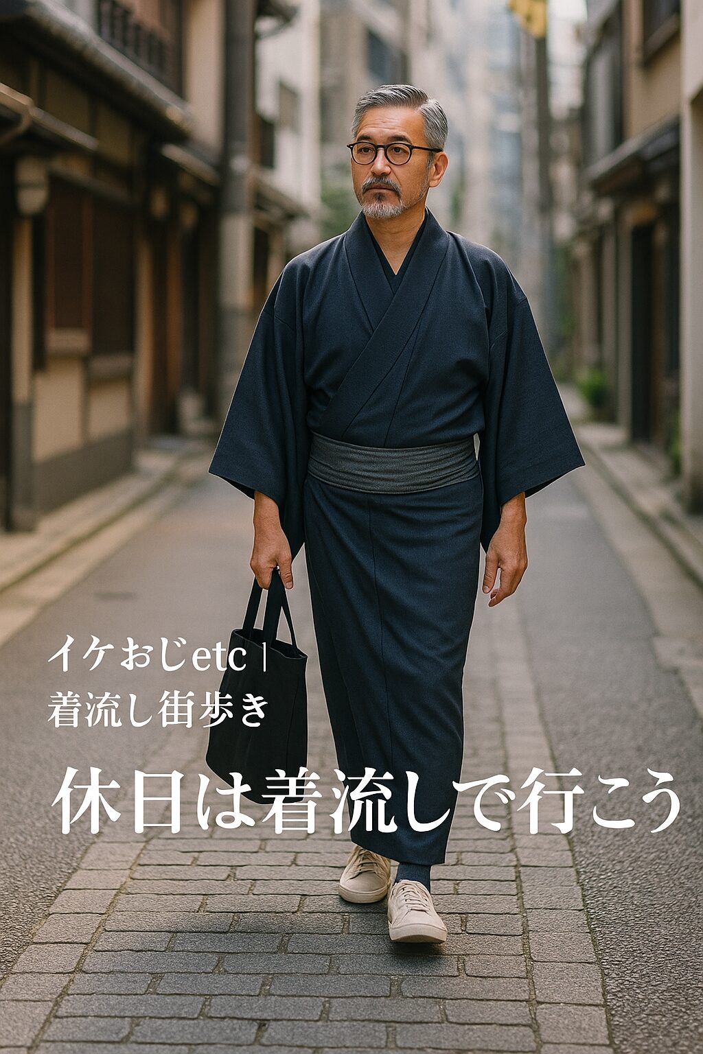 肩肘張らない着流しは、休日の散歩やカフェにも馴染む。ポイントは素材・足元・色の3点。小物は軽く、“抜け”を作ろう。