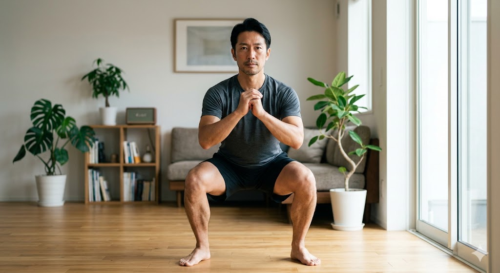 ① スクワット(下半身+代謝アップ)